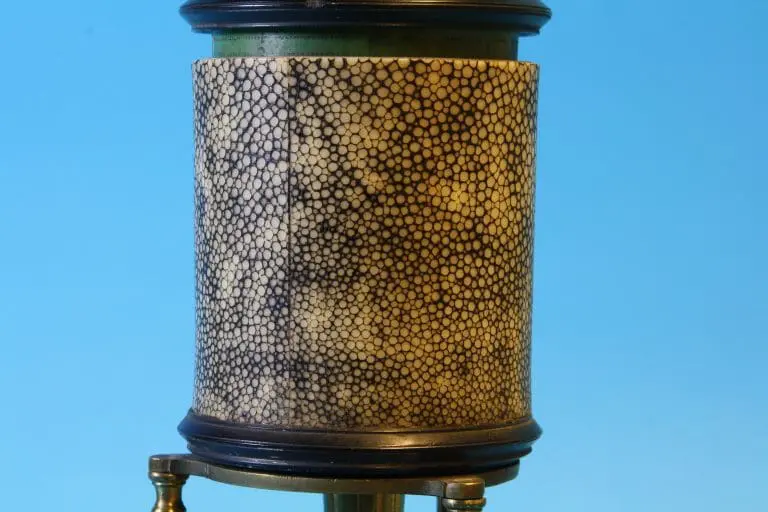 De buitenste buis van de tubus is van onderen in een buxushouten ring gevat. De kartonnen buis is van buiten met roggehuid bekleed. In deze buitenbuis past een tweede, kartonnen tubus, deze laatste is met groen papier beplakt. Deze tubus draagt aan de onderzijde een messing ‘snuit’ waaraan de objectieflensjes geschroefd kunnen worden.