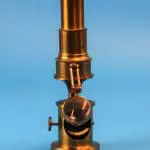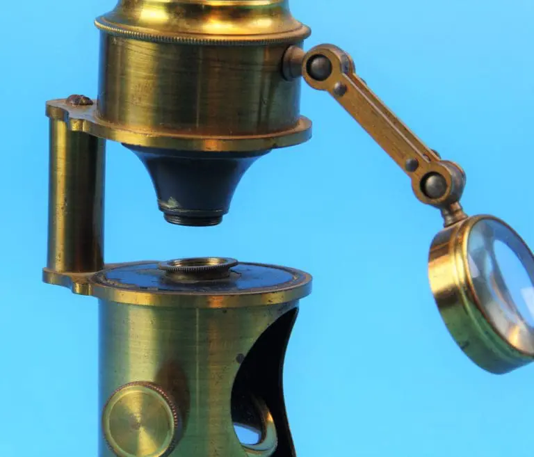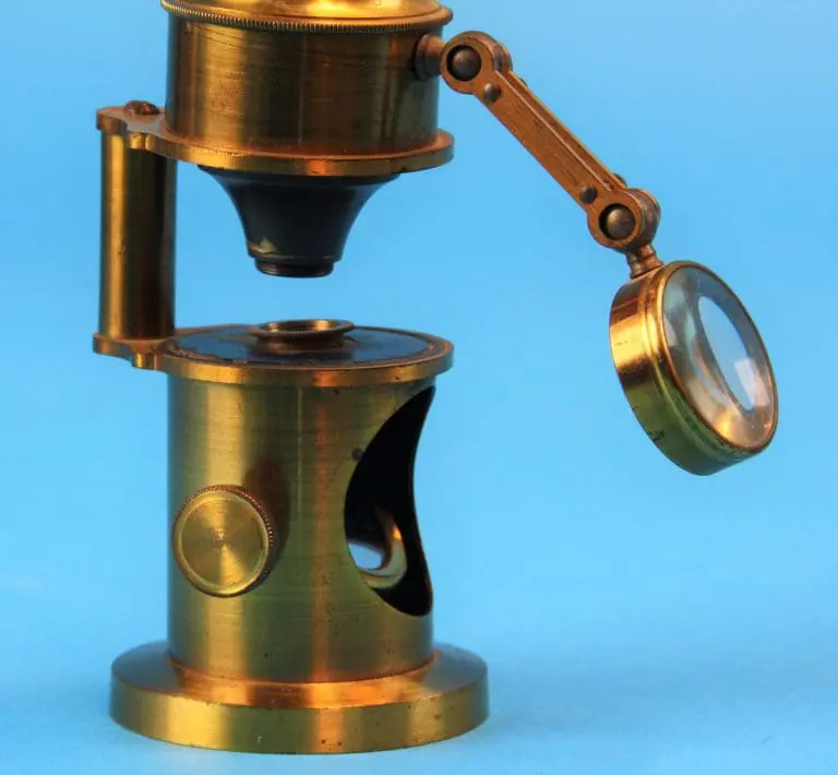 Met een objectief en een oculair. Dit exemplaar is ook voorzien van een verstelbare lens voor opvallend licht.