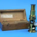 Dit microscoop is afkomstig uit de collectie van prof. dr. J.S. Ploem.