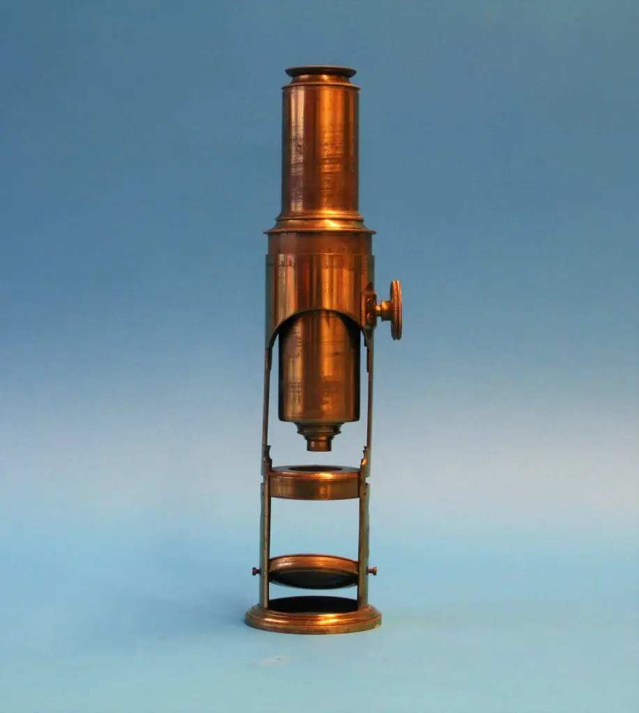 Het is een klassiek Greenough type stereomicroscoop met twee objectieven in een slede. Er is slechts één set aanwezig. Er zijn twee oculairen met een vergroting van 7 maal.