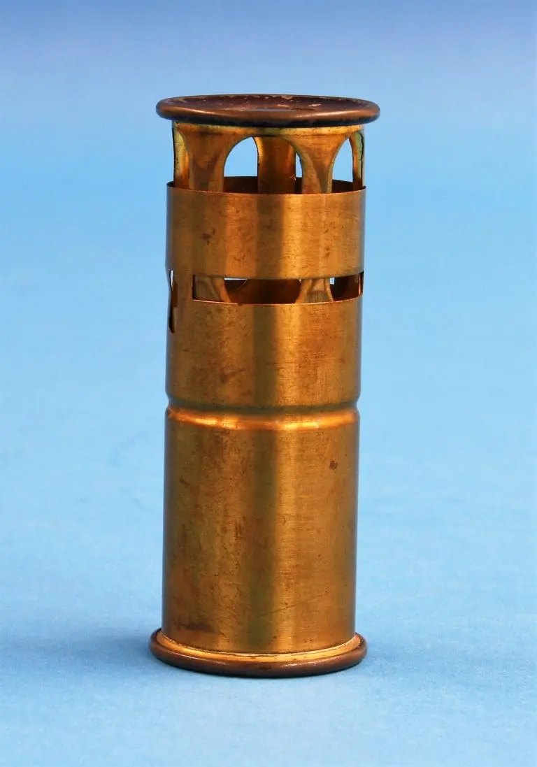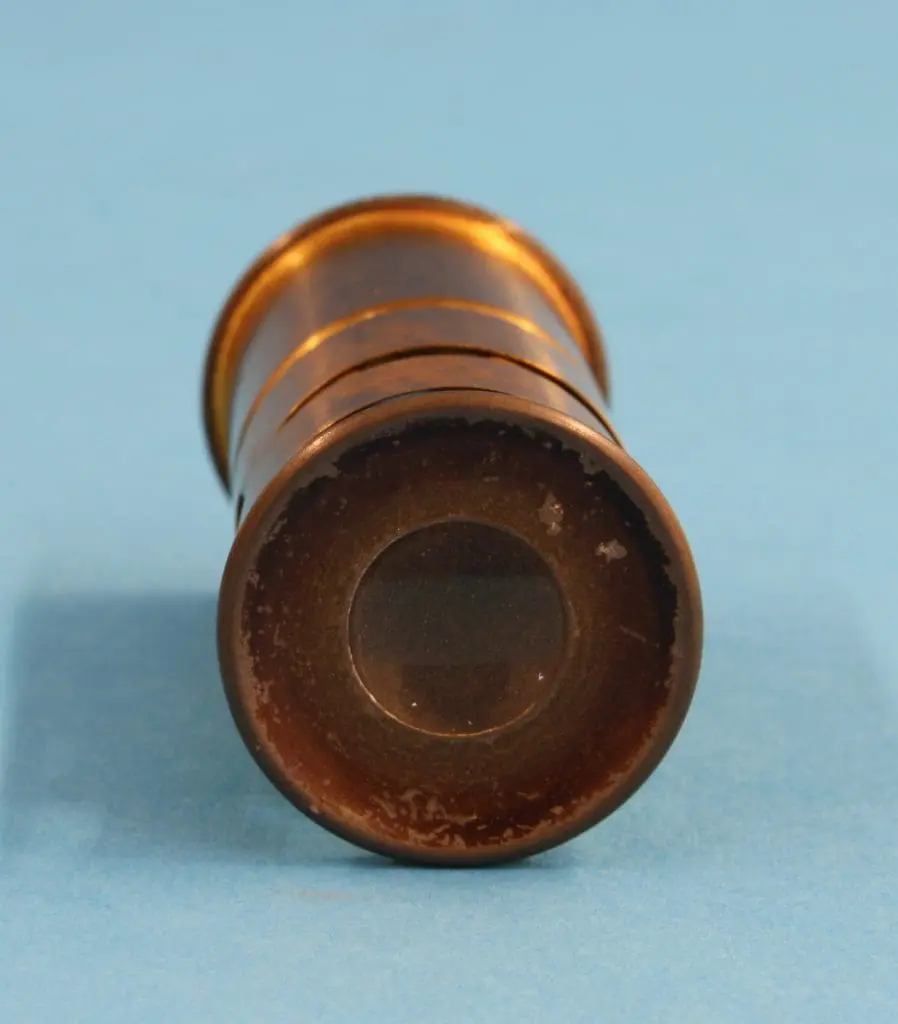 Het microscoop bestaat uit een messing cilindertje met in de zijkant twee sleuven waarin een preparaat gestoken kan worden. Met een busje met veer wordt het preparaat gefixeerd. Voorzien van een verlichtingslens.